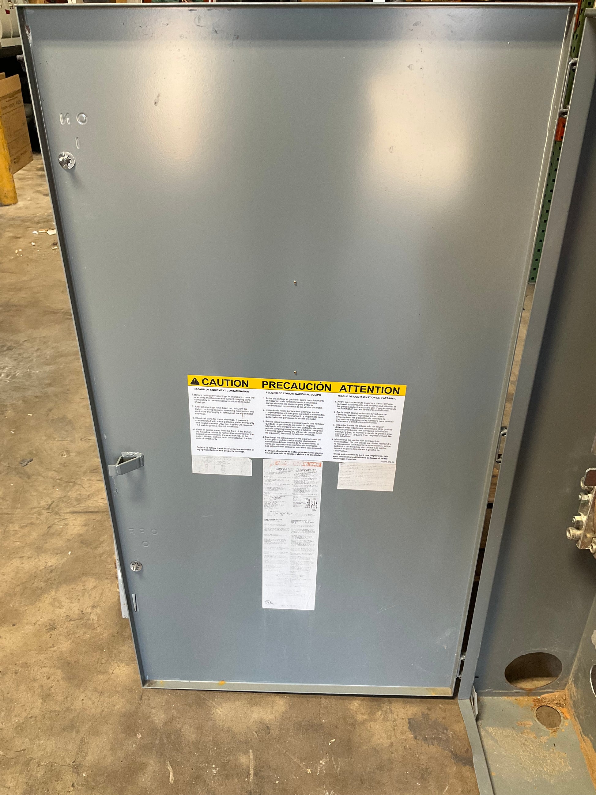 Square D H325NR heavy-duty disconnect switch delivers reliable performance for industrial and commercial applications. This 400-amp, 240-volt fusible unit features outdoor-rated construction, engineered to withstand harsh environmental conditions while maintaining consistent operation. The fusible design provides integrated overcurrent protection, eliminating the need for separate fusing components. Built to Square D's exacting standards, this disconnect switch offers dependable service isolation and safety disconnect capabilities. Ideal for main service disconnects, equipment protection, and circuit isolation in demanding electrical systems. Used condition with full functionality.
