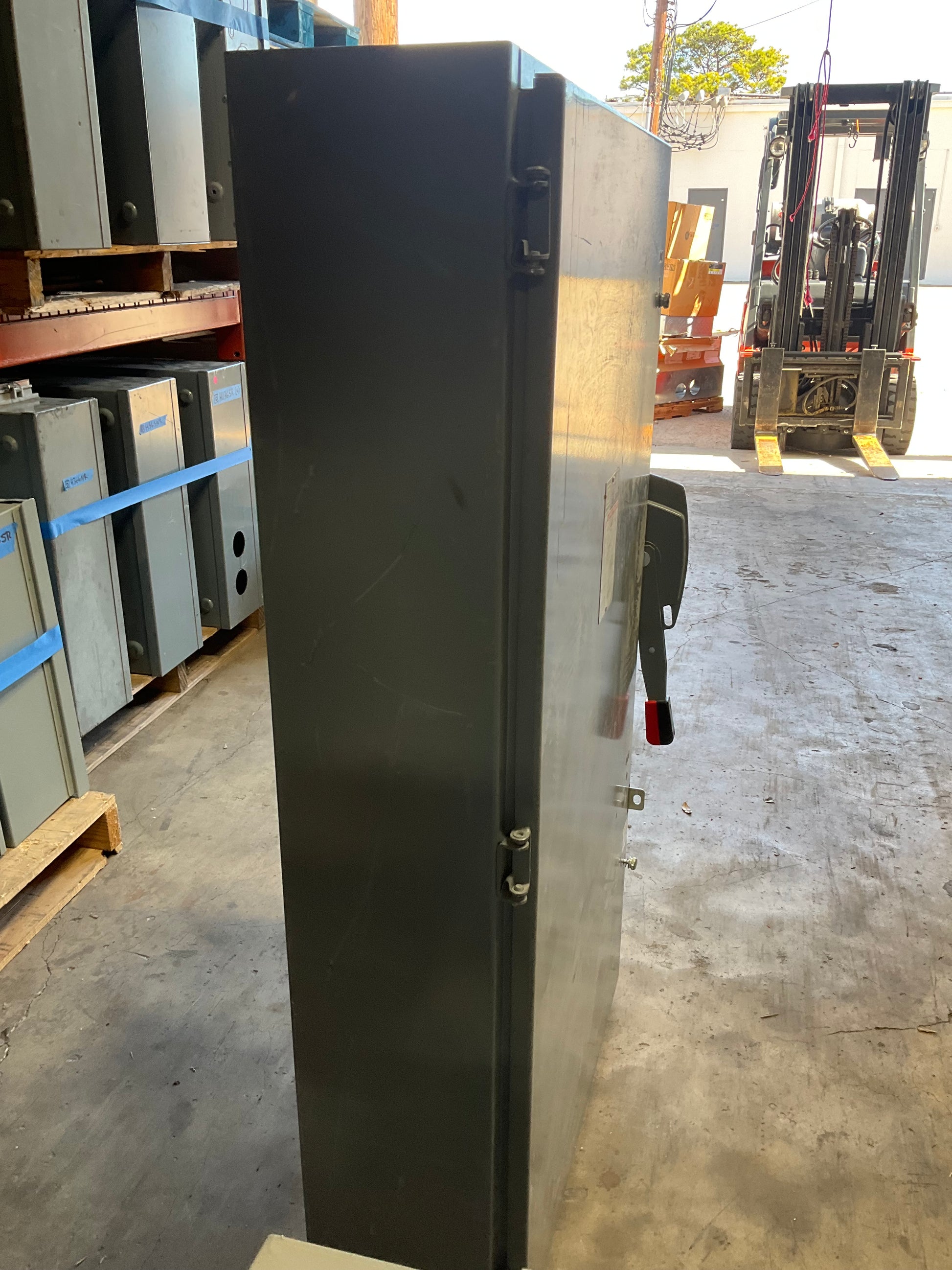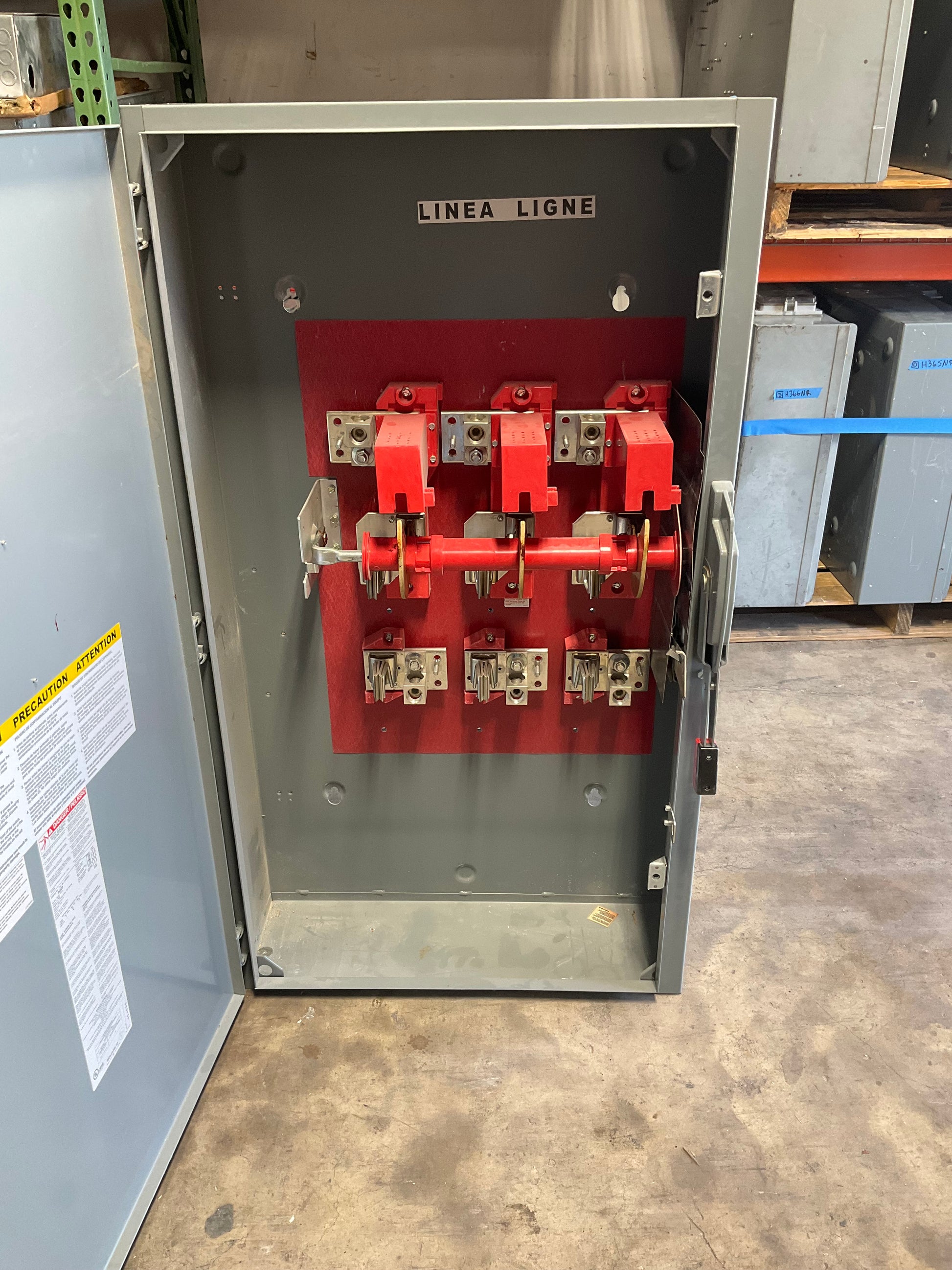 Square D Disconnect H325 rated for 400 amps at 240 volts, designed for indoor fusible applications. This heavy-duty disconnect switch provides reliable service disconnection and circuit protection in commercial and industrial electrical systems. Built to meet industry standards for safety and performance, it's engineered for dependable operation in demanding environments. Ideal for main service disconnects and branch circuit protection where robust switching capability is essential.