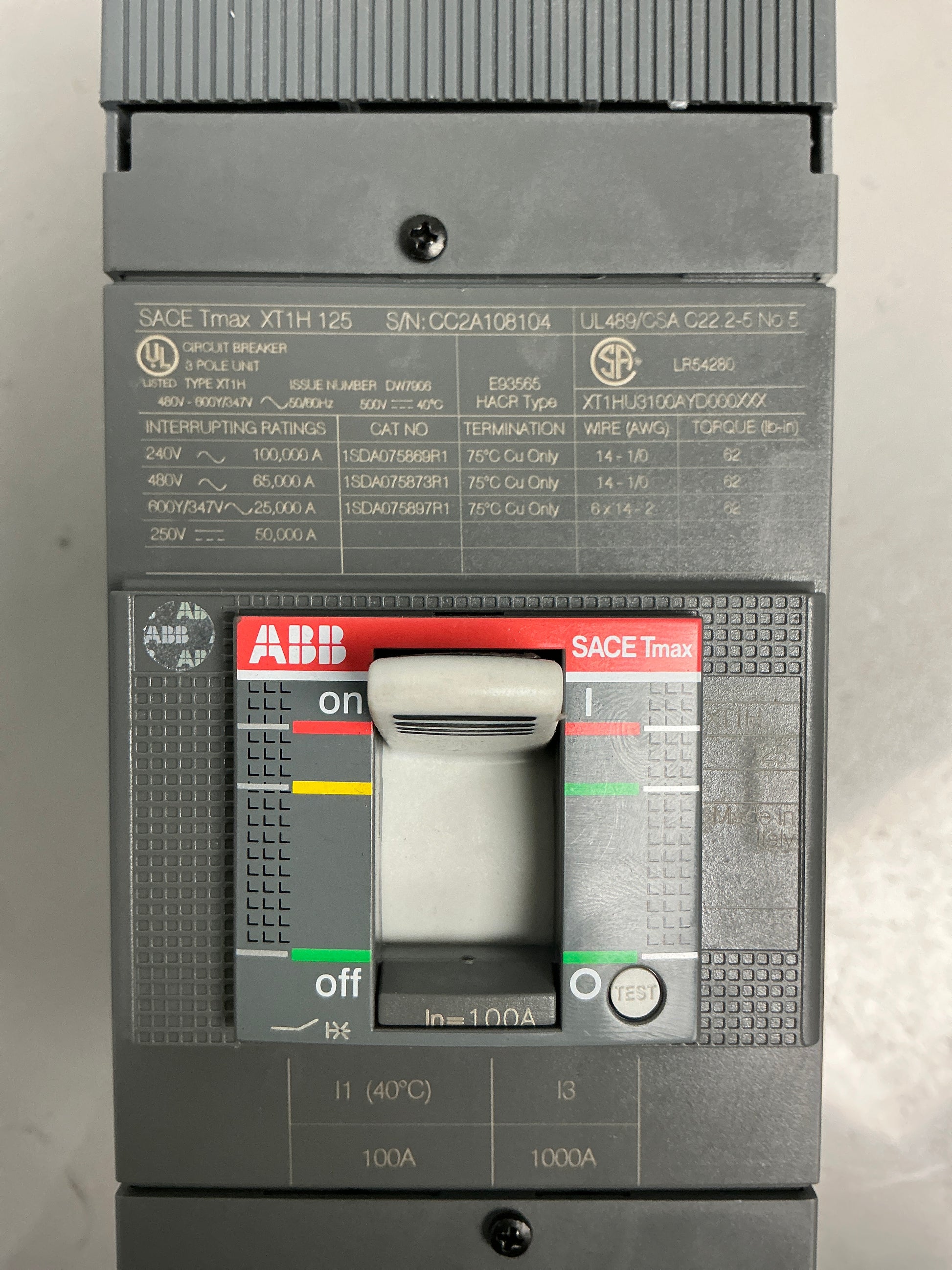 New ABB XT1HU3100AYD000XXX 100 Amps, 3 Poles, Breaker