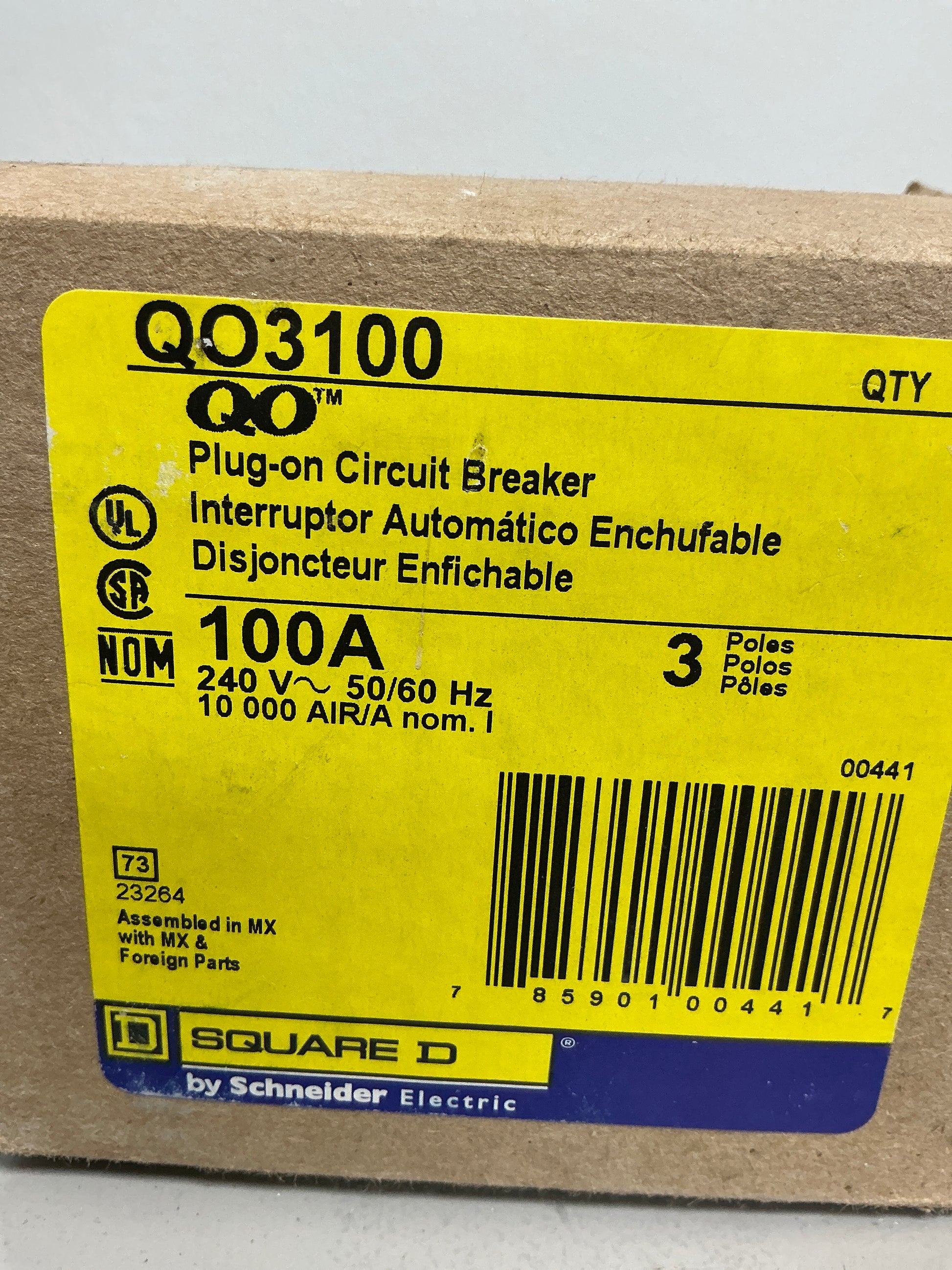 New Square D QO3100 3 Poles, 100 Amps, 240 Volts