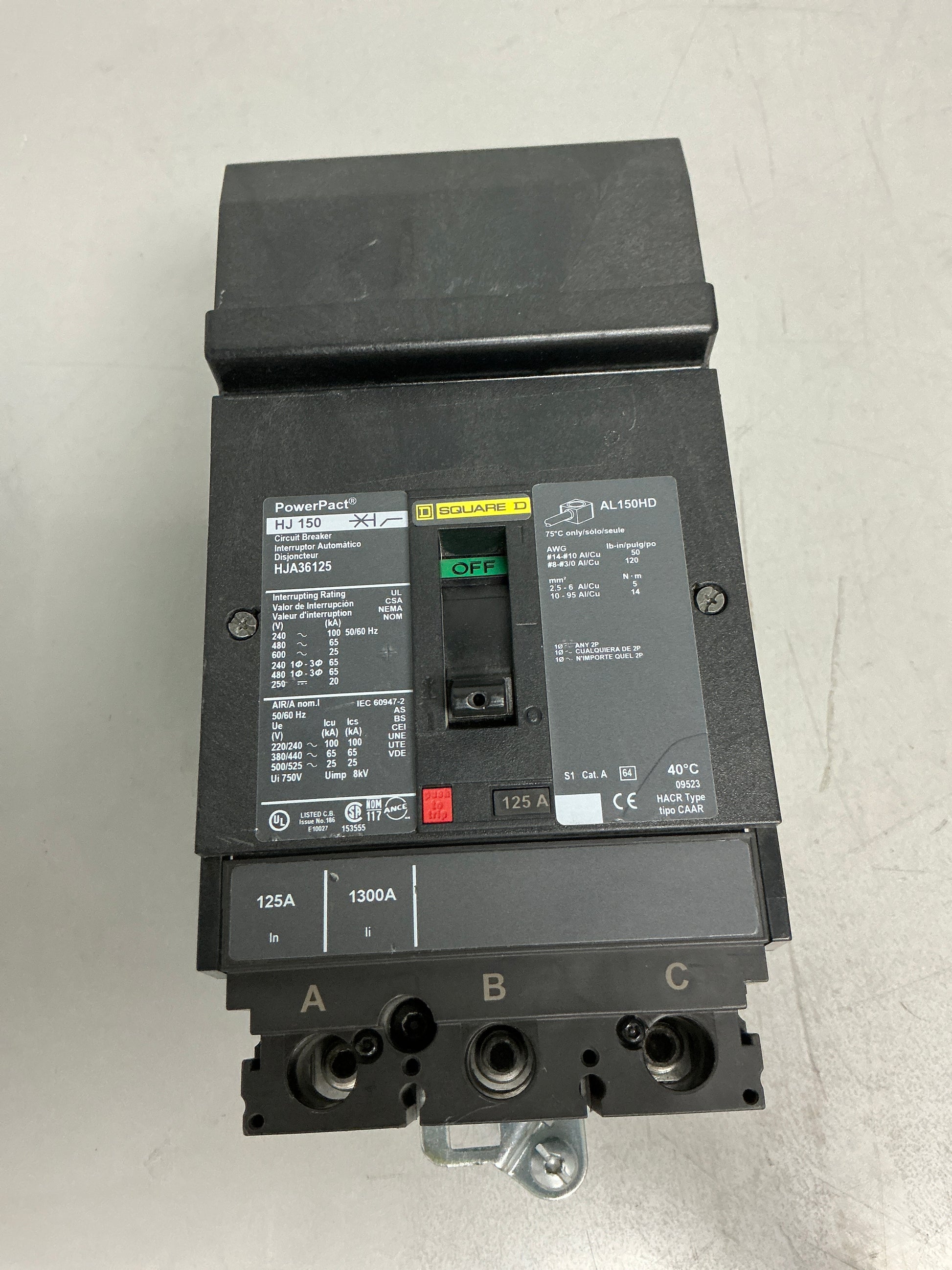 Square D HJA36125 3-pole circuit breaker rated for 125 amps. This used unit is ideal for industrial and commercial electrical applications requiring reliable overcurrent protection. Built to Square D's quality standards, it delivers dependable performance in demanding environments. Perfect for upgrading or replacing existing breaker systems. Verify compatibility with your panel before installation.