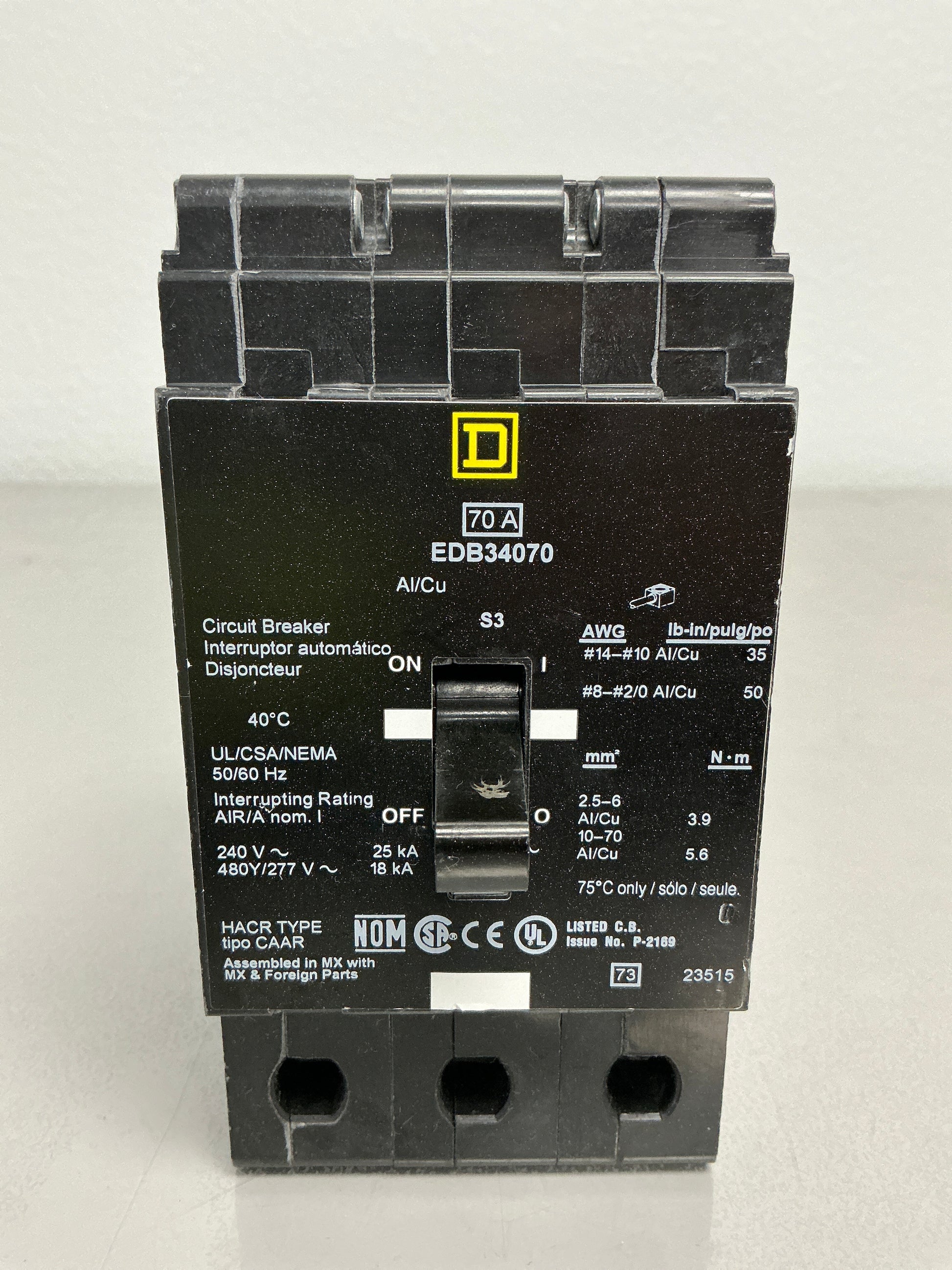 Used Square D EDB34070 3 Pole, 70 Amps, 480/277 Volts