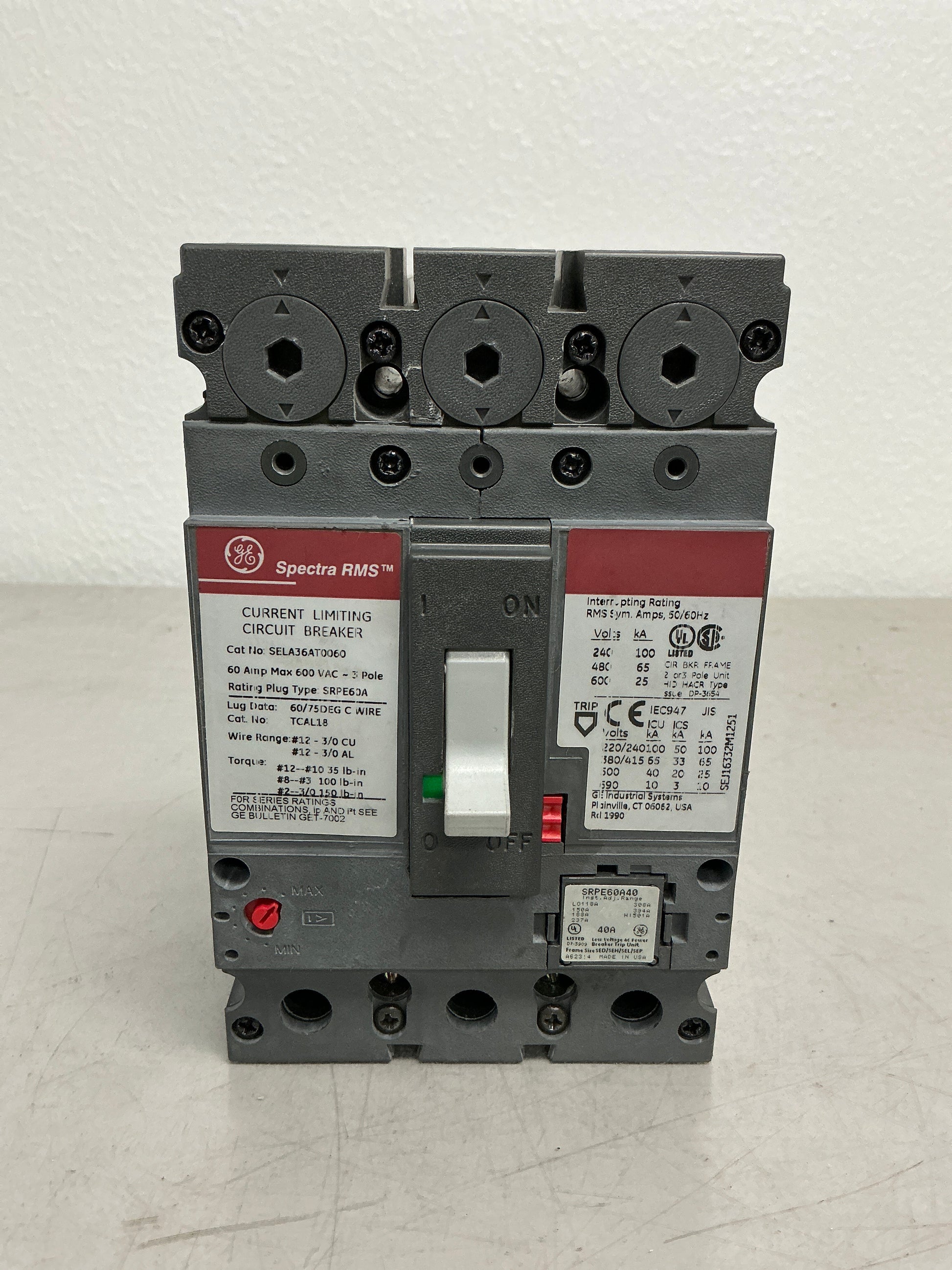 Used SELA36AT0060 3 Pole, 60 Amps, 600 Volts