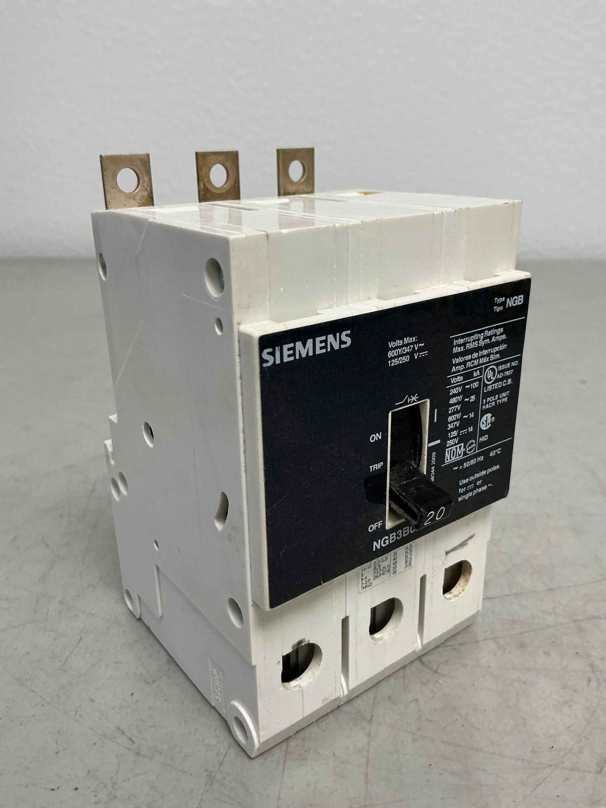 Used Siemens NGB3B020 3 Poles, 20 Amps