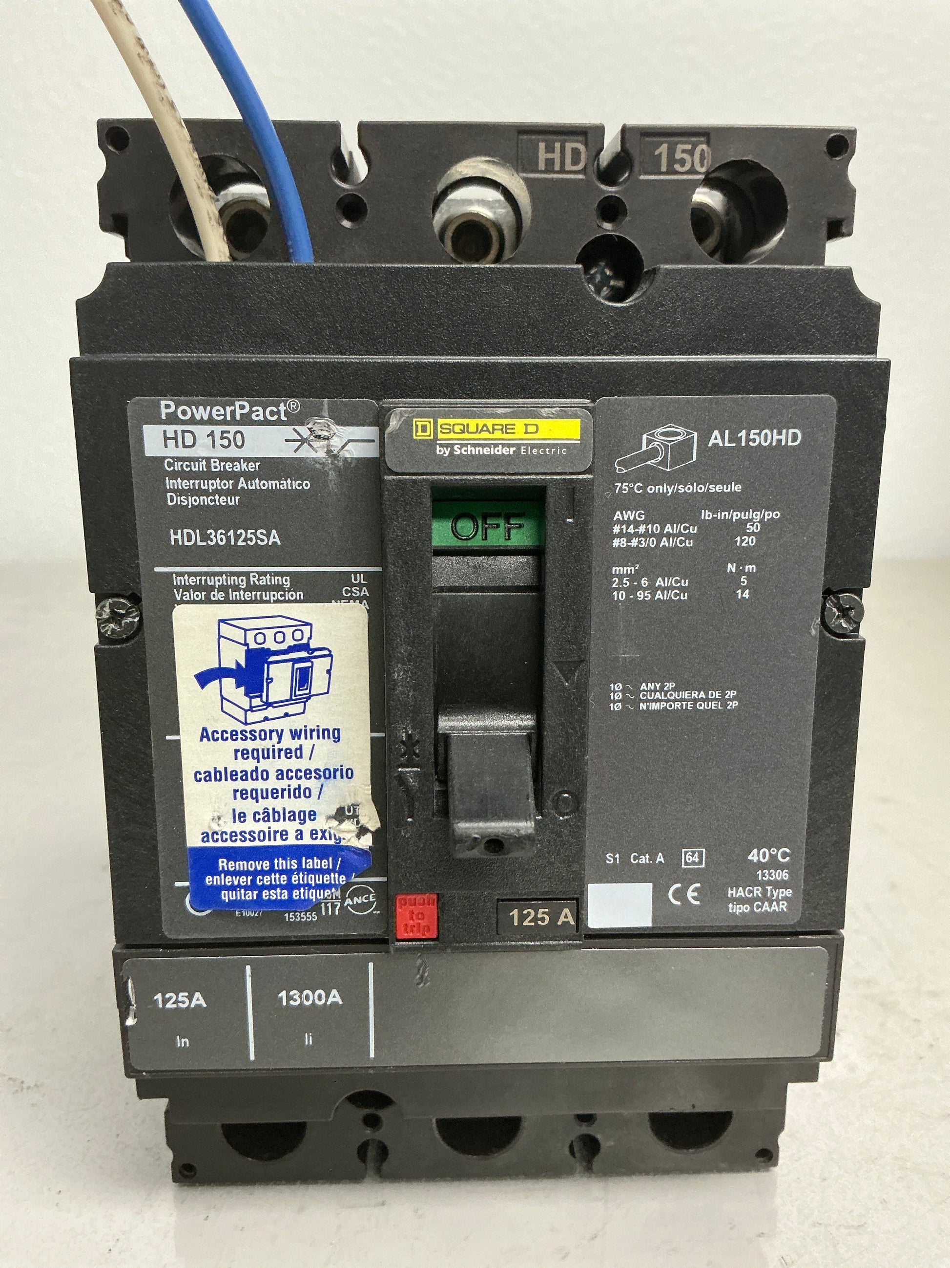 Used Square D HDL36125SA 3 Pole, 125 Amps, 600 Volts