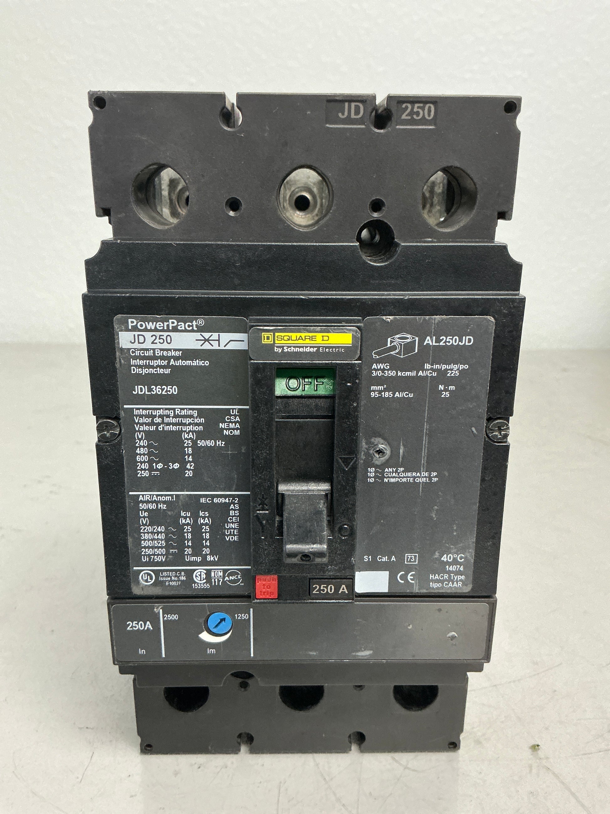Used Square D JDL36250 3 Pole, 250 Amps, 600 Volts