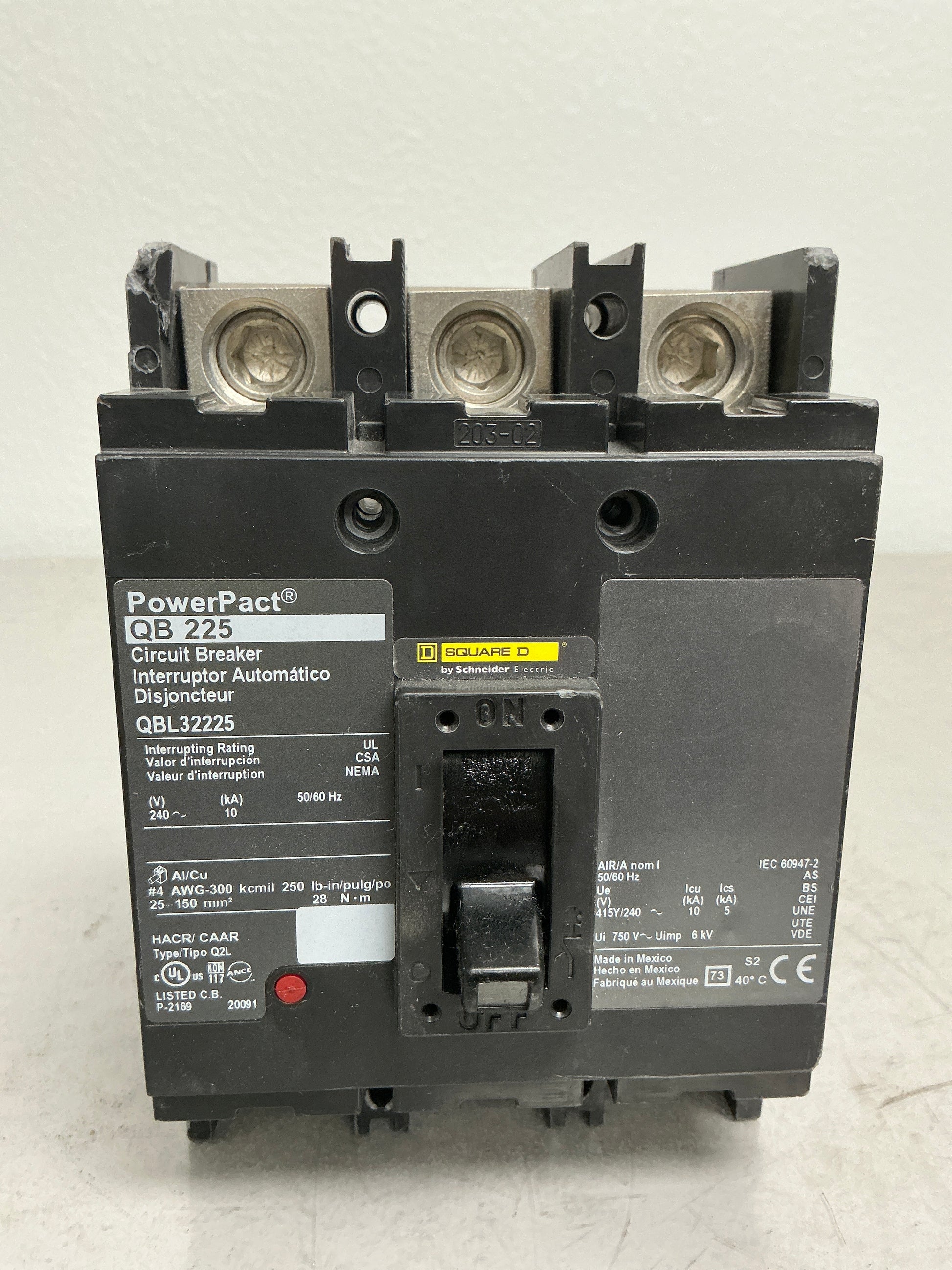 *CHIPPED* Used Square D QBL32225 3 Pole, 225 Amps, 240 Volts