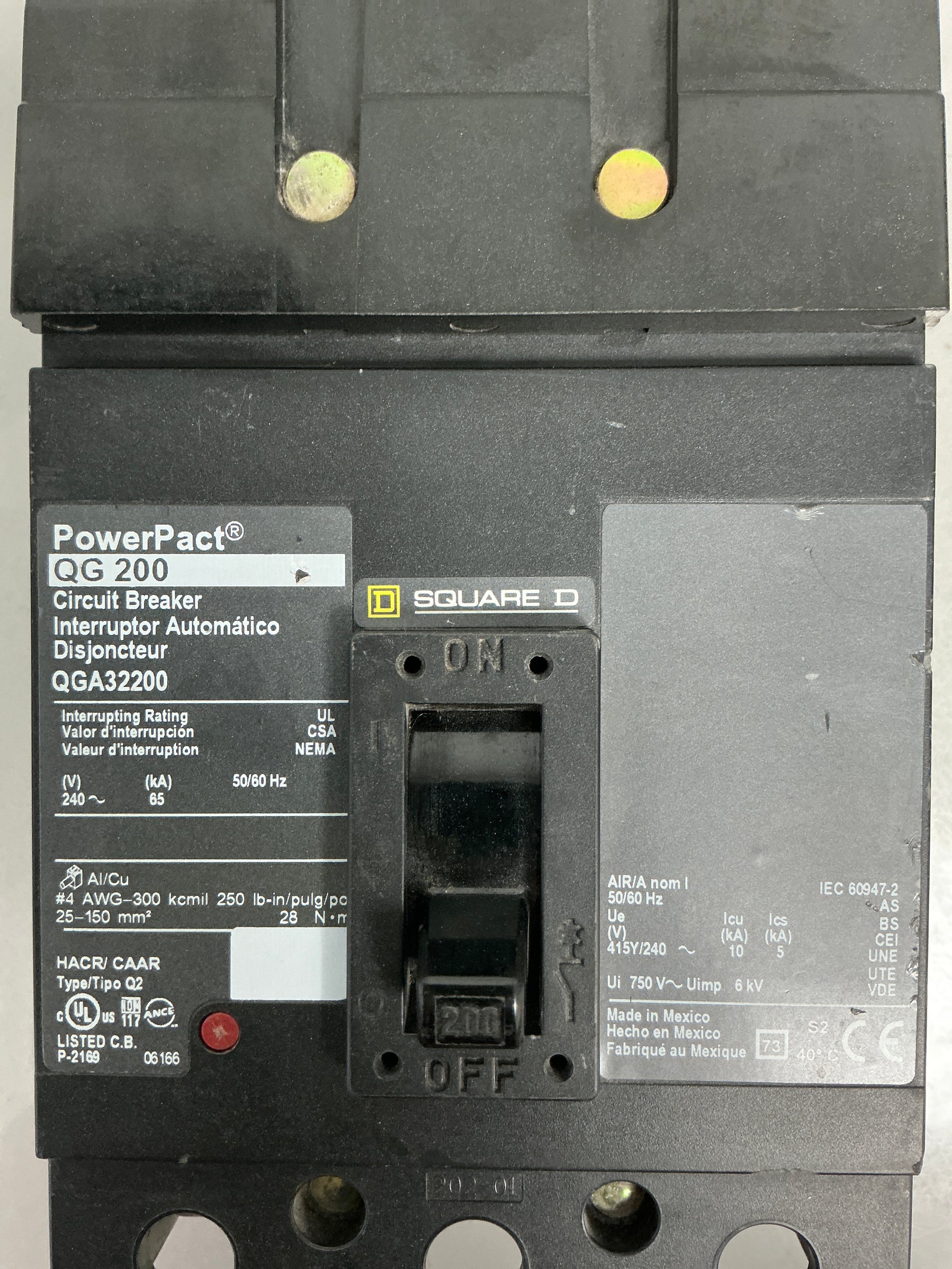 Used Square D QGA32200 3 Pole, 200 Amps, 240 Volts