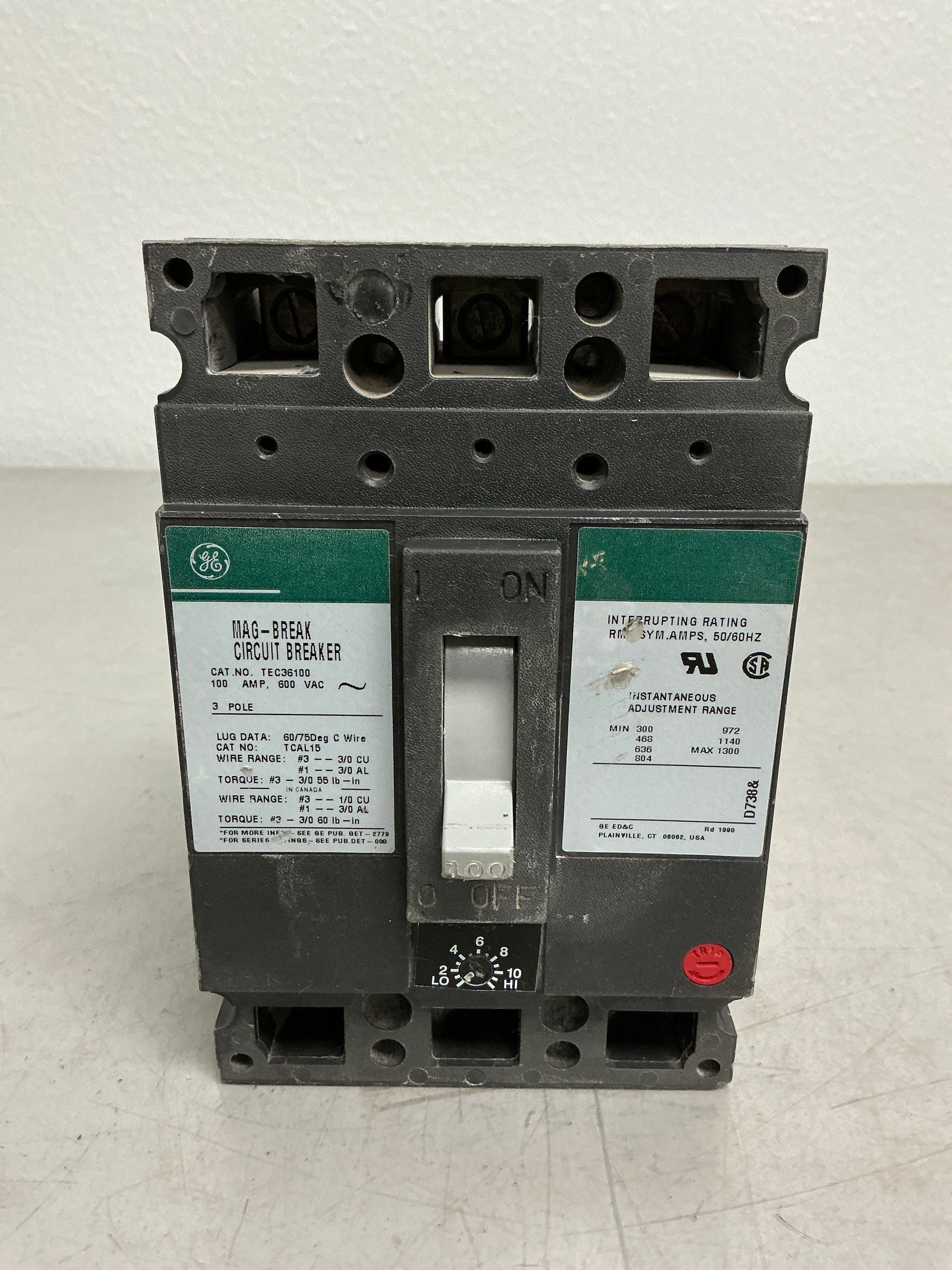 Used TEC36100 three-pole circuit breaker rated for 100 amps at 600 volts, built for high-voltage industrial applications. This breaker delivers dependable overcurrent protection in demanding three-phase power systems serving heavy equipment, large motors, and utility-scale installations. TEC engineering provides reliable fault detection and rapid circuit isolation under extreme conditions. Suitable for power generation facilities, industrial plants, and specialized high-voltage environments. Inspected and verified for safe operation in your electrical infrastructure.